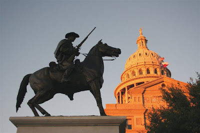 The Texas State Capital was completed 1888 and its style is classified as Renaissance Revival, which is characterized by classical orders, round arches and symmetrical composition. The structural exterior is red granite, quarried just 50 miles from the site.We had a bird’s eye view of the traffic because our hotel room overlooked the main freeway through town. We were amazed to see on a Saturday that it was at a dead stop. A local friend told us that weekends could be worse than weekdays because folks north of the city road trip south to San Antonio and these hordes have to pass through Austin.