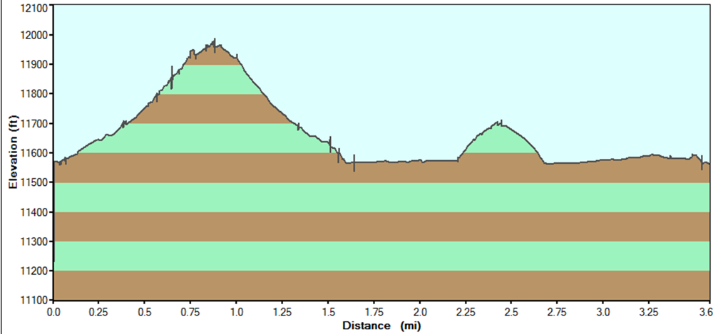 Elevation: 11, 541 ft - 11,989 ft (highest)